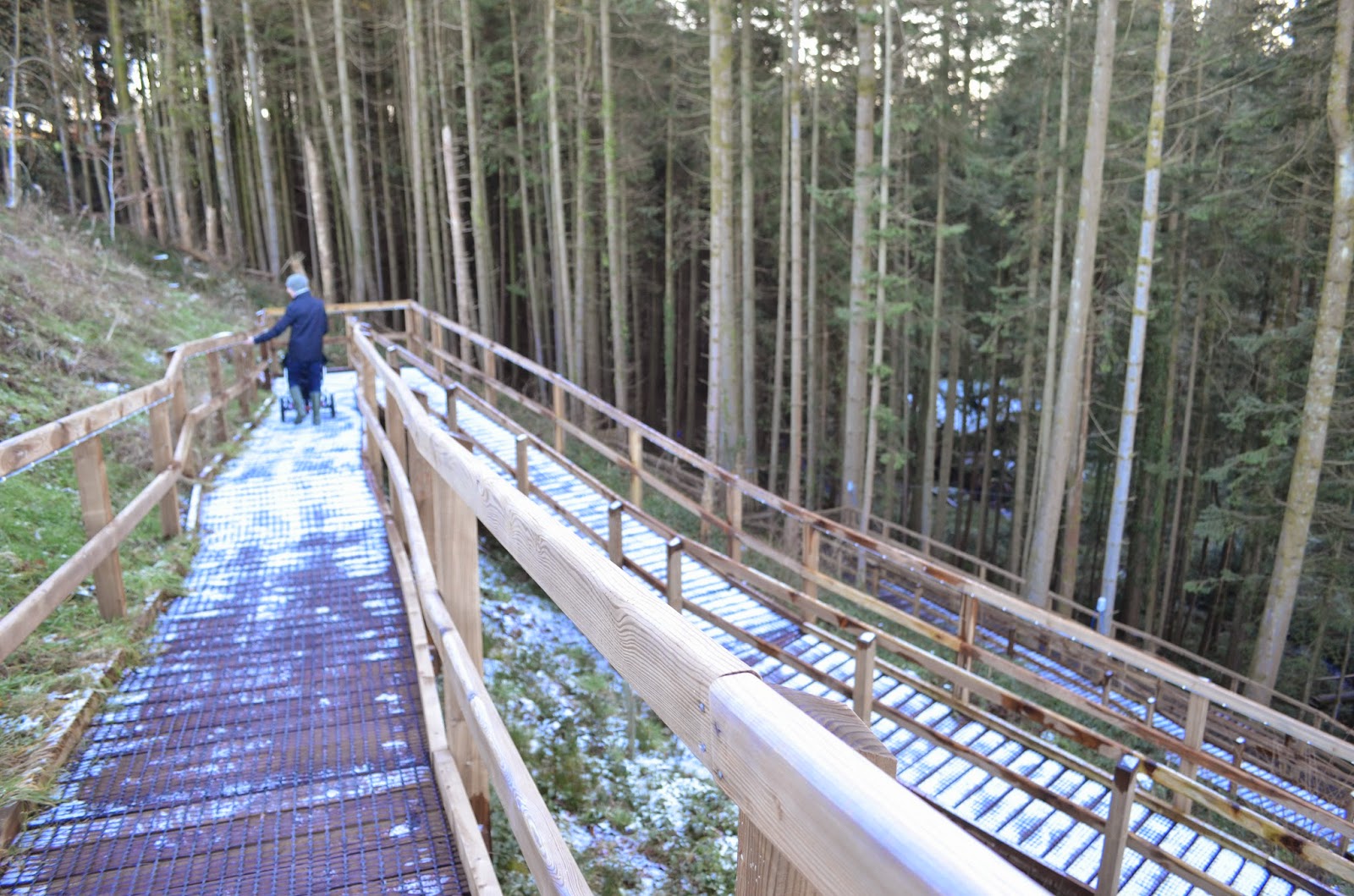 We went for a walk on one of the many nature trails, we walked up to Camp Smokey where 2 of the trails begins, we looked on the map and decided to take the Green route as it was starting to get dark and we didn’t want to be too long. We luckily had our off-road pushchair with us so it was no problem for us with all the mud, and uneven surfaces. It was a very enjoyable walk, lots of lovely scenery and we even had to cross the little stream twice. We was planning on doing another route but never got the time to do it unfortunately. When we walked down to Camp Smokey which was closed due to the season we was in, we noticed there was the Steep Ravine, you could do zip wires that range from 40ft to 240ft! You could also do the high ropes, Woodland Warrior Laser Combat and so much more! Great for older children and adults too, I believe it was closed at this time of the year though. You can also hire bikes and trailers if you want to go on any cycle routes, or even just to get around the park a bit quicker.