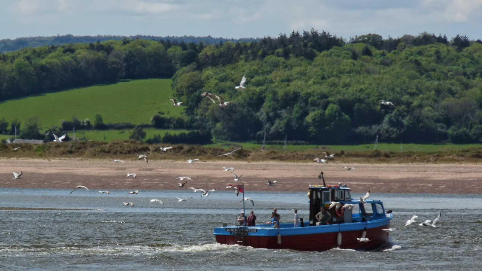 O woke up and joined in the fun and spotted the fishing boats coming back with trails of seagulls behind them.