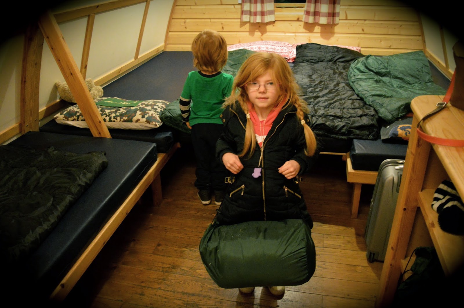 The Wigwams at Springhill Farm are at the top end of the glamping scale. There is enough seating for five people with a table inside and this area easily converts to a sleeping area at night. The wigwams have their own fridge and kettle plus electric sockets for all important phone charging and they are all fitted with an electric radiator which provided more than enough heat – in fact I had to turn it off when we went to sleep as we were too warm. (Sorry about the mess in the photo’s – the children were over excited, rushed inside and made themselves at home before I could even unpack my camera!) Bedding is not provided so you do need to take your own quilts or sleeping bags plus a pillow or you can hire for an additional charge.